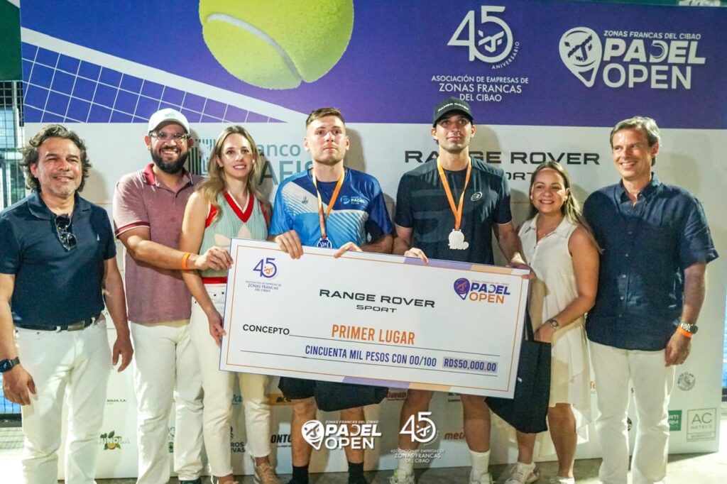SANTIAGO.- El torneo Zonas Francas del Cibao Pádel Open, realizado en el marco del 45 aniversario de la Asociación de Empresas de Zonas Francas del Cibao (Azocibao), culminó el pasado fin de semana, con rotundo éxito.