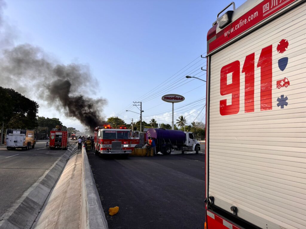 13 de agosto de 2024, La Vega.- El Sistema Nacional de Atención a Emergencias y Seguridad 911 coordinó la asistencia a una explosión de un camión de gas que involucró a varios vehículos en la autopista Duarte, sector El Llano del municipio La Vega.