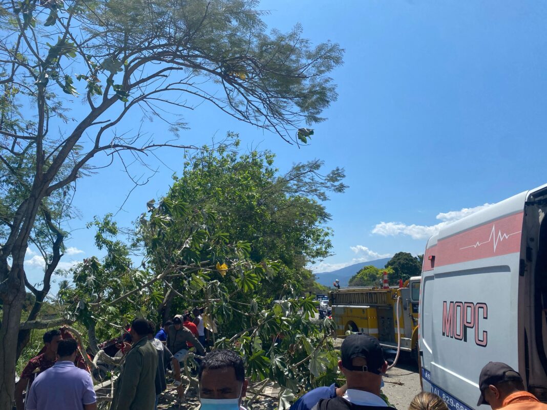 En la emergencia participaron tres ambulancias de la Dirección de Servicios de Atención a Emergencias Extrahospitalarias (DAEH); asimismo, el Cuerpo de Bomberos de La Vega intervino para controlar la situación, ya que el camión afectado generaba una gran cantidad de humo.