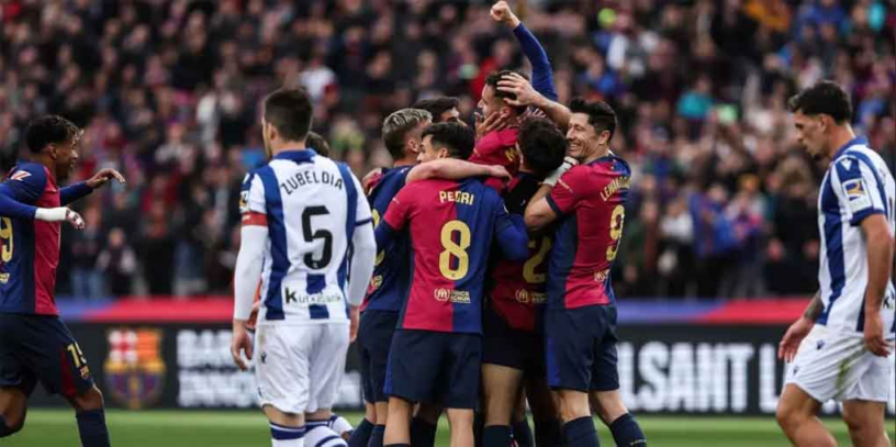 A pesar que La Real se defendió como pudo ante los ataques culés, la fiesta catalana continuó en el segundo tiempo con una diana de cabeza de Ronald Araújo y la número 21 de Robert Lewandowski, para afincarse como el máximo artillero de la Liga.
