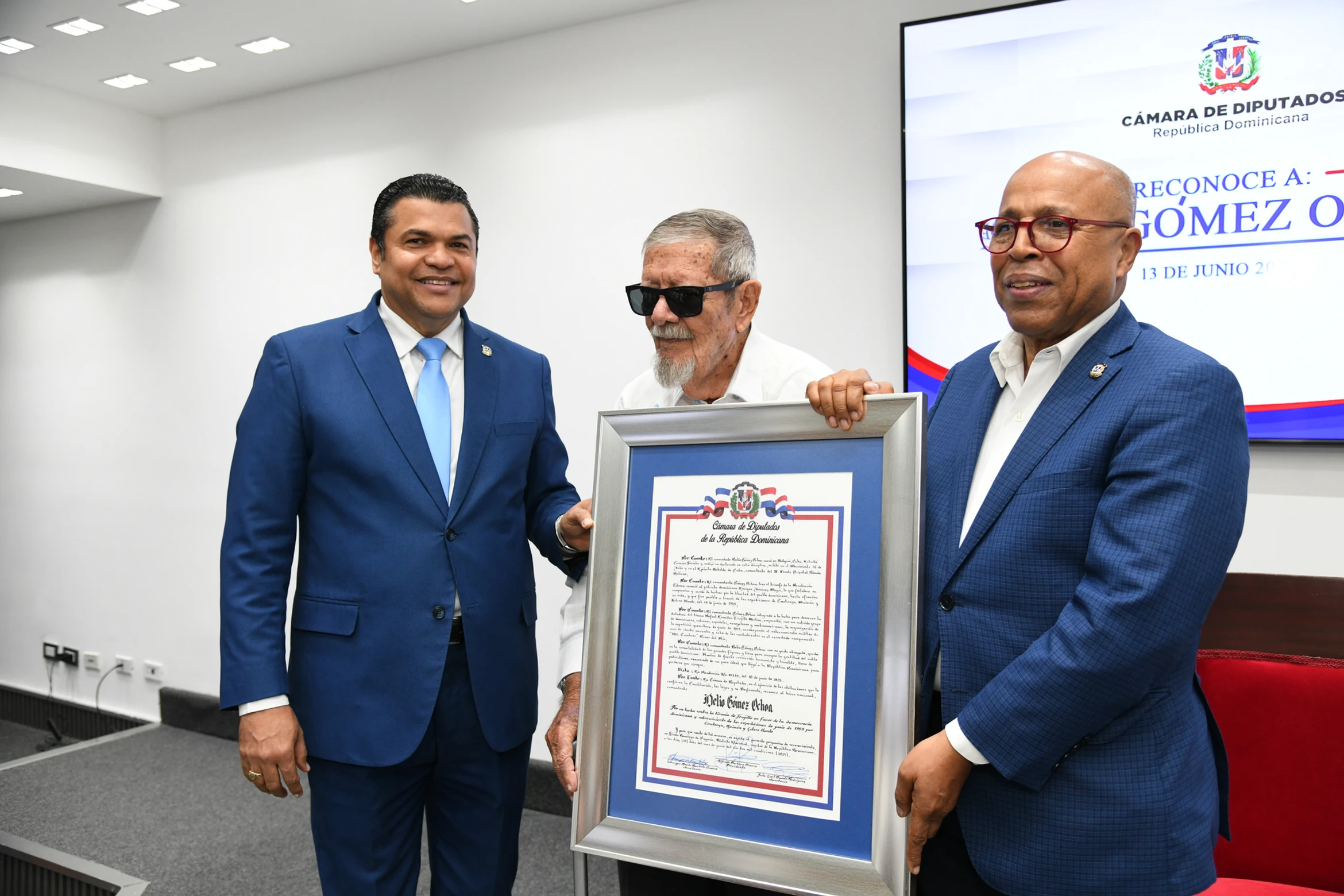 El acto de reconocimiento estuvo encabezado por el presidente de la Cámara de Diputados, Alfredo Pacheco, quien destacó el papel heroico desarrollado por el comandante Gómez Ochoa a favor de la lucha contra la tiranía trujillista.