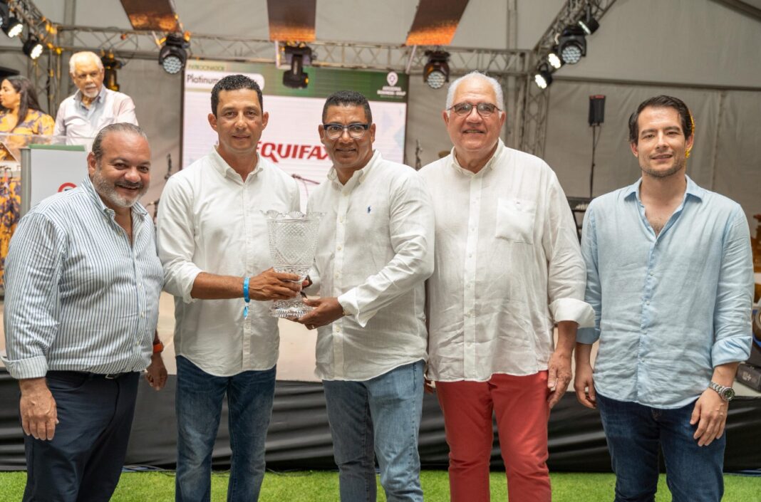 Luis Lembert, Luis José Bonilla y Tomás Alonso, premian a los campeones del 2024, los golfistas César Rodríguez y Freddy Rodríguez.