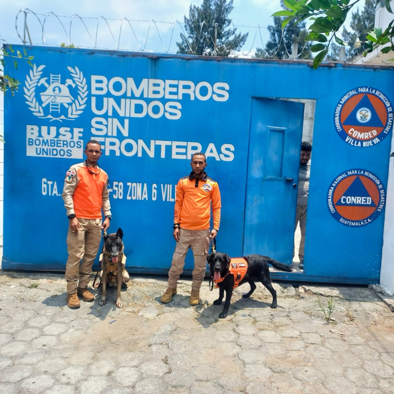 Villanueva, Guatemala.- Técnicos de la Defensa Civil dominicana, participante en el curso de rescate canino Método ARCON, búsqueda y localización de personas sepultadas con vida bajo escombros, que desarrolla la organización Bomberos Unidos Sin Fronteras, en esta ciudad y que busca mejorar capacidades en el área.