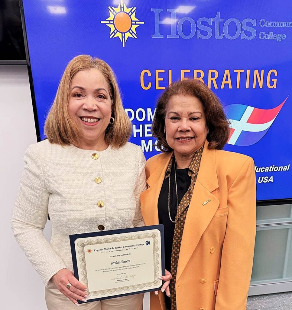 Nueva York, NY, EEUU (31-03-2026).- La activista social y escritora dominicana, Evelyn Herrera, nativa de Santiago de los Caballeros, fue reconocida por el Eugenio María de Hostos Community College of the City University of New York, durante un acto realizado recientemente en esa entidad.