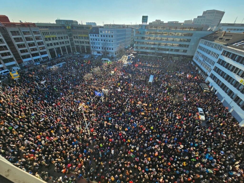 La crisis de la socialdemocracia no tiene parangón. El partido más antiguo de Alemania y, posiblemente, el que cuenta con el mayor número de militantes, en 1998 ganó con Gerhard Schröder con más del 40% del electorado. Desde entonces todo fue retroceso: en 2021 obtuvo con Scholz el 25,7% y este último domingo perdió 9 puntos suplementarios. Ni siquiera pudo capitalizar en las urnas el intenso proceso de movilizaciones populares contra la extrema derecha que se vienen realizando en gran parte del país desde inicios mismo del año pasado. Una de dichas protestas, en febrero de este año, reunió en Múnich a más de 200 mil personas y a otros muchos miles en diversas ciudades.