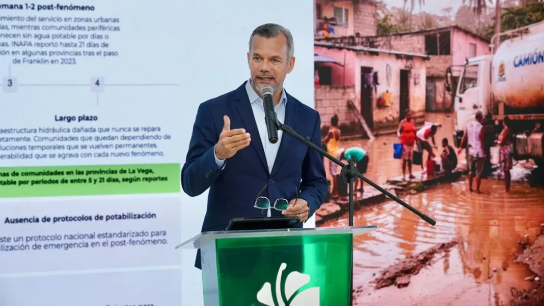 Uno de los impactos más críticos y menos atendidos, de los fenómenos atmosféricos es la contaminación y pérdida del suministro de agua potable. Cada tormenta significativa interrumpe el acceso al agua en decenas de comunidades: durante la tormenta: contaminación de fuentes por sedimentos y aguas residuales; colapso de plantas potabilizadoras y sistemas de bombeo del INAPA.Primeras 48 horas: distribución improvisada sin protocolos sanitarios; riesgo elevado de leptospirosis, enfermedades diarreicas y cólera.Semana 1–2: restablecimiento en zonas privilegiadas mientras comunidades periféricas permanecen sin agua. El INAPA reportó hasta 21 días de interrupción en algunas provincias tras Franklin (2023).
