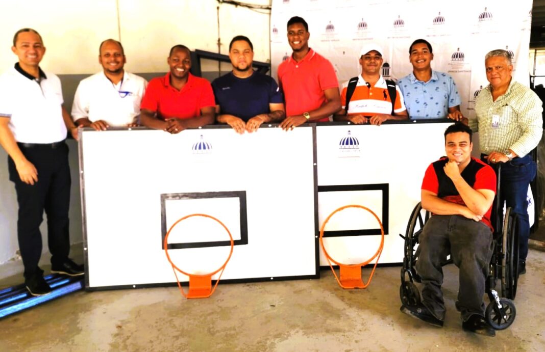 SANTIAGO DE LOS CABALLEROS, Santiago, República Dominicana (26-09-2024). Por disposición del ministro de deportes, Kelvin Cruz, el director provincial MIDEREC-Santiago, Tony Peña R, hizo entrega de torres, tableros y aros para jugar baloncesto, a una comisión de dirigentes del club Proyecto Las Charcas.