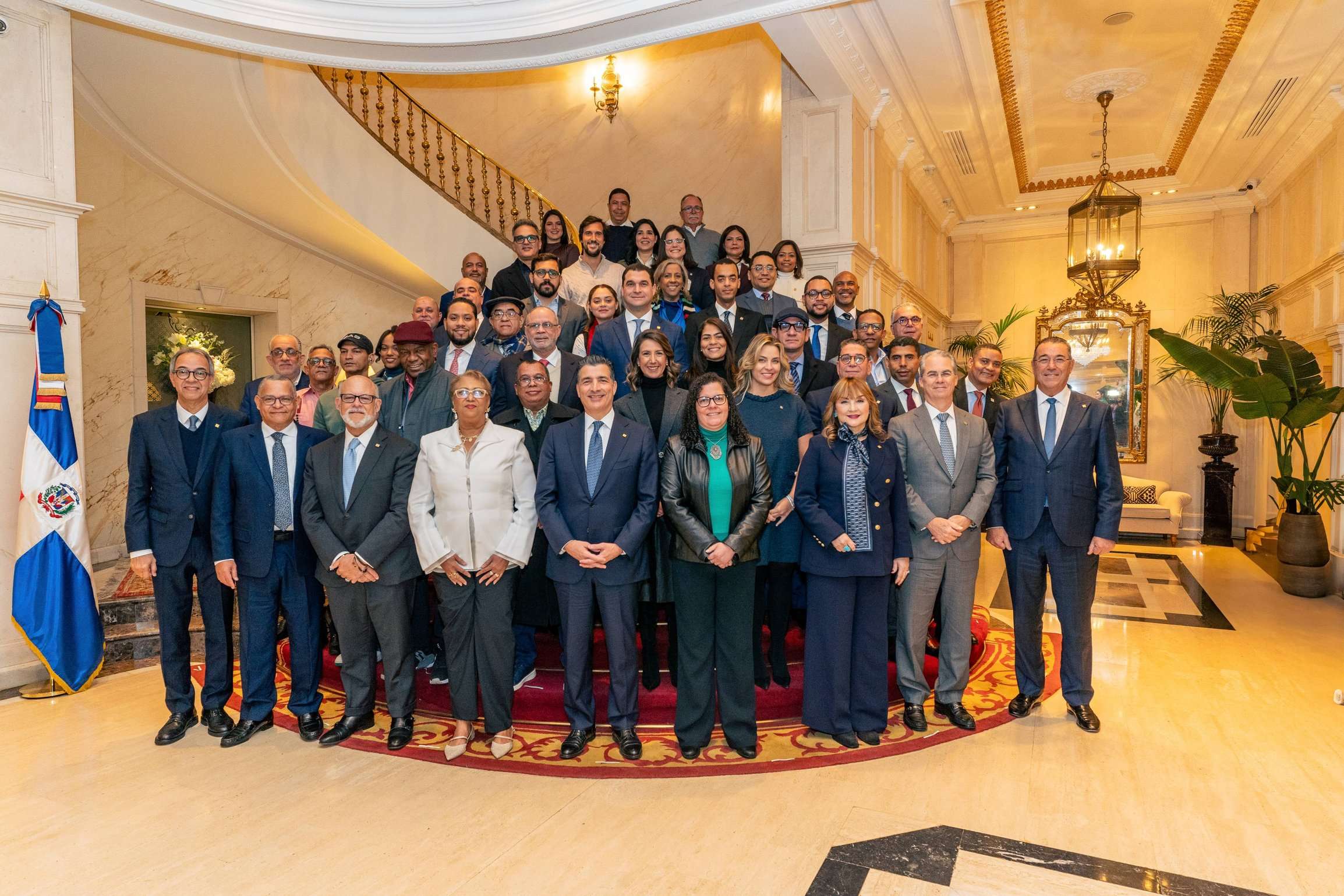 Junto al señor Paniagua estuvieron presentes los señores René Grullón, vicepresidente ejecutivo de Negocios Nacionales e Internacionales; Antonia Antón de Hernández, vicepresidenta ejecutiva senior de Gestión Humana, Transformación Cultural, Administración de Créditos y Cumplimiento; José Mármol, vicepresidente ejecutivo de Comunicaciones Corporativas, Reputación y Banca Responsable; Juan Manuel Martín de Oliva, vicepresidente del Área de Negocios Turísticos; Mariel Bera, vicepresidenta del Área de Relaciones Corporativas y Banca Responsable; José Hernández Caamaño, vicepresidente del Área de Ingeniería y Mantenimiento; Karina Vallejo, gerente senior de Negocios Turísticos; Dinorah Grullón, gerente de la División de Proyectos y Beatriz Sousa, gerente de Negocios Turísticos.