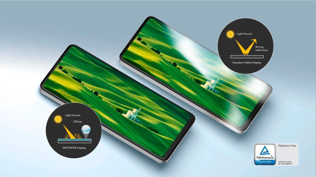 NXTPAPER ofrece un confort ocular líder en el sector y cuenta con la certificación TÜV Rheinland de bajo nivel de luz azul dañina. Los usuarios pueden disfrutar de una experiencia visual más cómoda y a todo color, similar a la del papel.