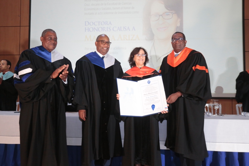 Santo Domingo, R.D. La Universidad Autónoma de Santo Domingo (UASD) otorgó este viernes un “Doctorado Honoris Causa” a la connotada socióloga dominicana Marina Emilia Ariza, en reconocimiento a su extraordinaria y destacada labor académica y de investigadora, durante un acto celebrado en el Auditorio Manuel del Cabral de la Biblioteca Pedro Mir.