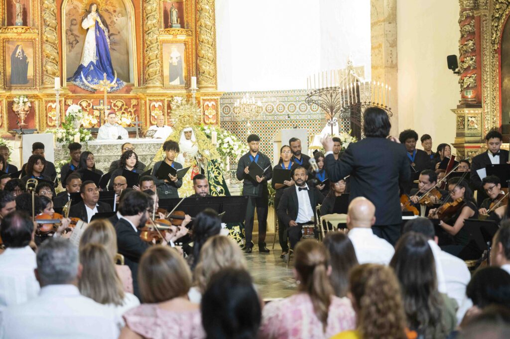 Durante el solemne acto se dedicaron canciones a la Virgen de la Esperanza de Triana, así como al Voluntariado Banreservas, en las voces de los miembros del coro juvenil Fiesta Clásica y la orquesta sinfónica Hispalis Filarmónica, dirigida por José Miguel Taveras, con la participación especial de la cantante católica Celinés Díaz.